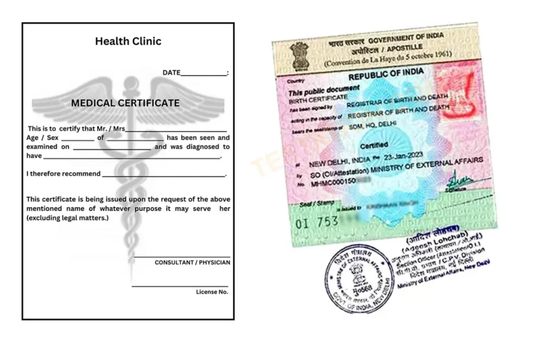 A Medical Certificate Apostille is an international verification process that confirms a medical document is valid, genuine, and issued by an authorised healthcare provider in India. When you travel abroad for a job, a long-term visa, studies, or immigration, foreign authorities often ask for a medical certificate that proves your health condition or medical fitness. To accept this document, countries that follow the Hague Apostille Convention require an official apostille stamp from the Ministry of External Affairs (MEA).